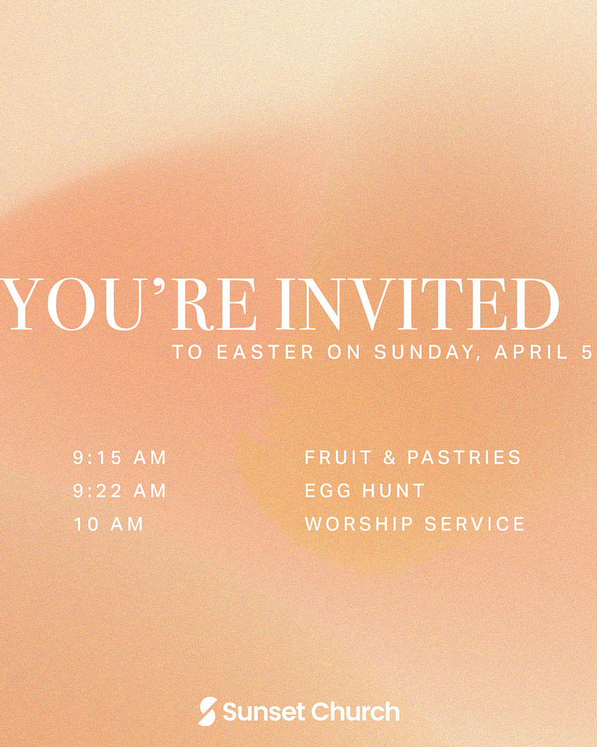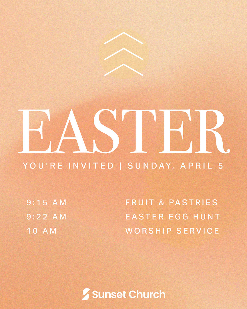 This Easter, we invite you to celebrate with us at Sunset Church! Together, we’ll experience the joy and hope of the resurrection of Jesus. No matter what, you’re welcome here, and we can’t wait to celebrate this season with you.